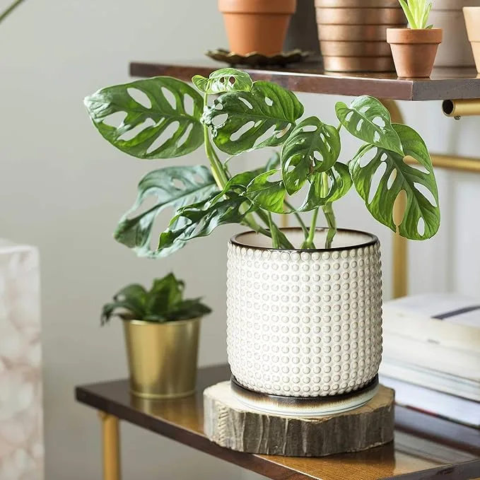 Modern White Textured Ceramic Flower Pot – Wholesale Patterned Indoor Planter with Drainage