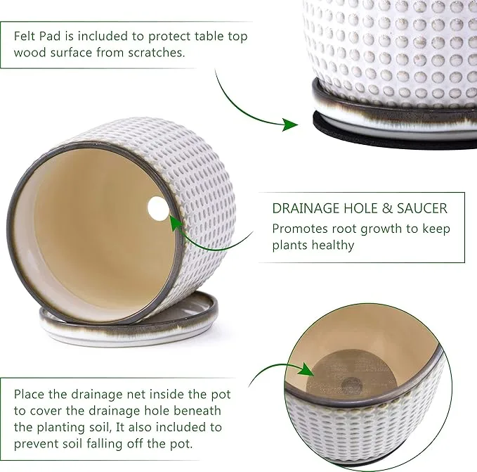 This modern White textured ceramic flower pot is designed for interior elegance and plant vitality. The embossed 3D surface, matte glaze, and matching saucer make it ideal for upscale decor, commercial installations, or gifting. Perfect for wholesalers and interior professionals seeking minimalist yet impactful plant containers.